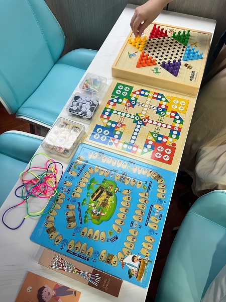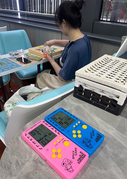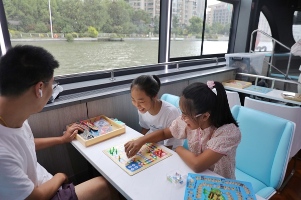 记者走进船舱,瞬间被满室的童年气息包围:每张桌案上都整齐摆放着跳棋、五子棋、飞行棋、象棋等经典棋类,翻花绳、挑竹签等无需复杂道具却藏着无限乐趣的怀旧小游戏也随处可见。为了让互动更有乐趣,船上每日都会举办“五子棋擂台赛”等对决活动,胜出者不仅能赢得“苏州河棋王”的荣誉称号,还能收获限定文创礼品,引得游客踊跃参与。