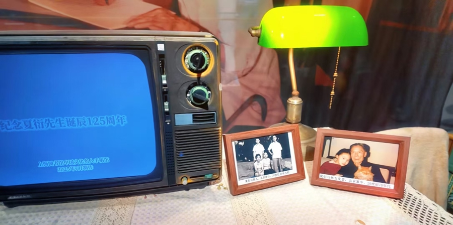 “名人书房”是手稿主题馆空间设计一大特色,2023年以来,已呈现过音乐家贺绿汀、朱践耳,老馆长顾廷龙,作家叶永烈的书房。此次展览以夏衍在北京六部口大街的旧居书房为原型还原了夏衍书房,小电视中播放以上图馆藏老照片编辑的纪念电子相册,展现自20世纪30年代以来,夏衍先生与家人、朋友、同事的点滴回忆。基于老照片制作的仿真书桌可供读者使用和体验,“与夏衍先生共读”每每成为展览现场的动人场景。