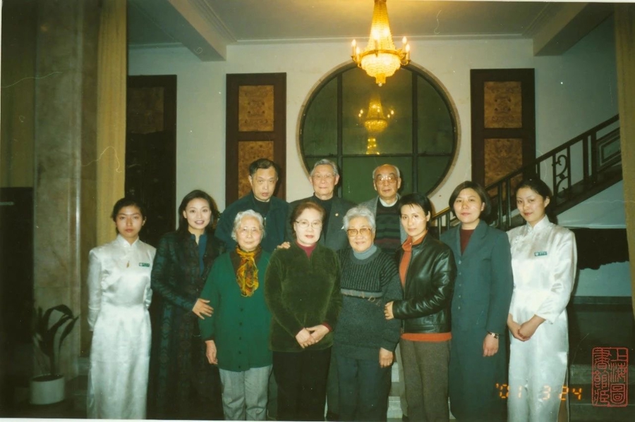艾明之(后右一)与友人前排左三起:刘琼夫人、秦怡、张瑞芳,后排中间为刘琼,2001年