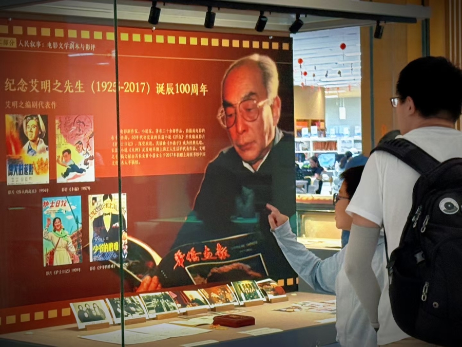 今年是电影剧作家、小说家艾明之诞辰百年,艾明之长女黄小蓓将艾明之代表作、小说《燃烧吧,上海》等作品手稿、信函、签名本、照片、奖章捐赠给上海图书馆中国文化名人手稿馆,共计350余件。在其主题展柜中,展出了艾明之获得的“纪念中国电影诞生100周年”奖章,上海市电影局高级评审委员会授予的一级编剧资格证书,还有剧本《许凤》《万里行》油印稿、《河东与河西》初稿等。艾明之自20世纪40年代以来著有二十余部作品,拍摄成电影的有十余部,1950年代初发表的长篇小说《浮沉》再版十余次,发行量超过百万册,由此改编的影片《护士日记》深受欢迎,其中插曲《小燕子》成为经典儿歌;长篇小说“火焰三部曲”《火种》《燃烧吧,上海》是反映早期上海工人生活的代表作品。