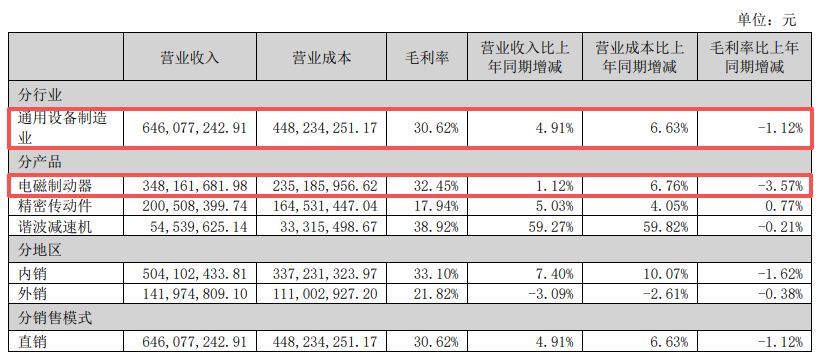 同时,核心产品“电磁制动器”毛利率的下滑,直接拖累瑞迪智驱2025年整体毛利率同比减少1.12个百分点至30.62%。