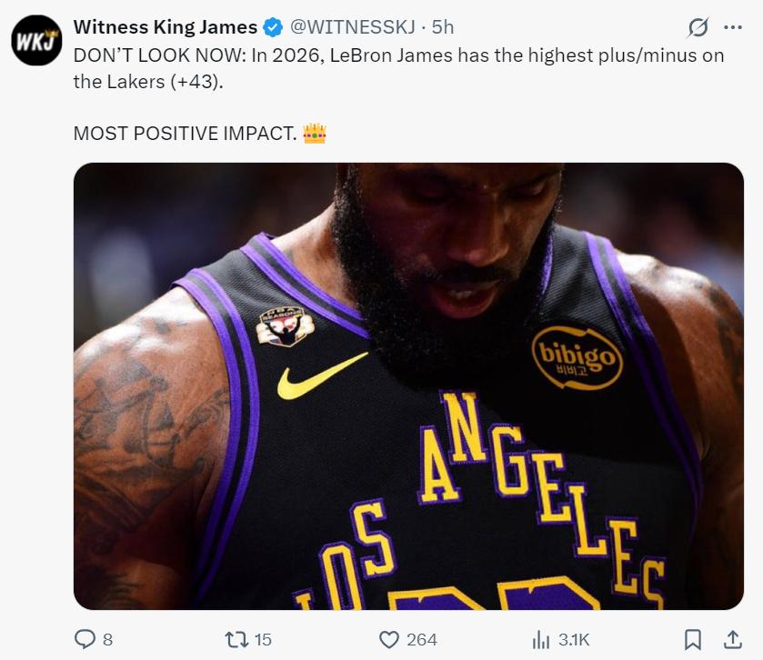 进入2026年后在线炒股配资平台,41岁的詹姆斯正负值+43是湖人第一,此前不是很多人说勒布朗正负值差吗?如今正负值都是最高的,这怎么说?